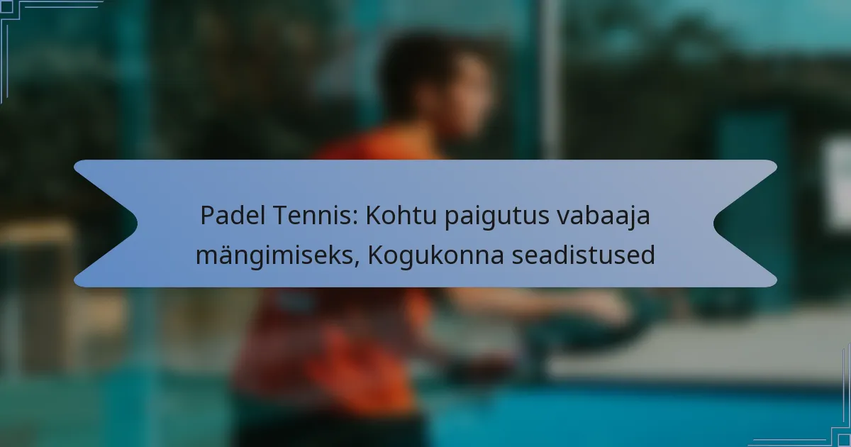 Padel Tennis: Kohtu paigutus vabaaja mängimiseks, Kogukonna seadistused
